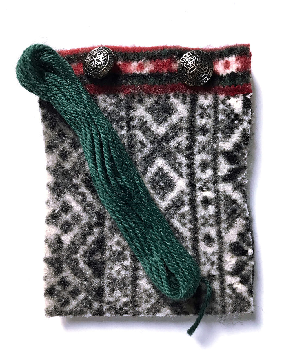 I knew I wanted to try the blanket stitch but the thread I had seemed too thin and the walls of the pouch so thick. Having just found some DMC wool thread at the thrift store luckily I picked up this lovely green. My first time using the blanket stitch, not perfect but I'm ok with it, at least I got a little experience.